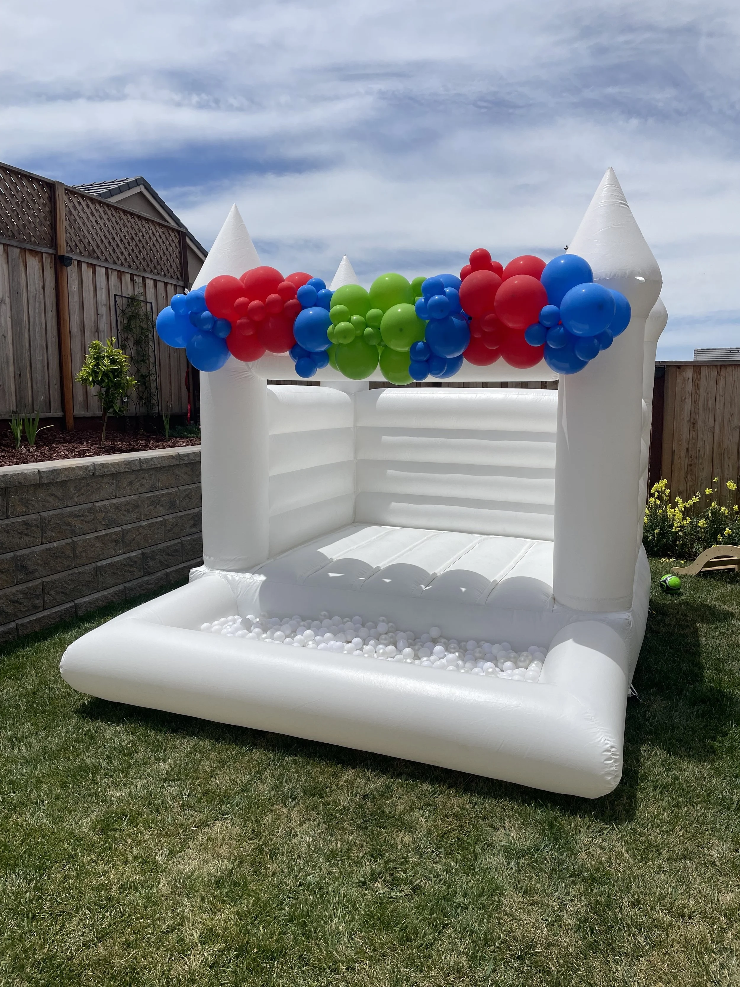 Our modern bounce houses are the inflatable upgrade your party needs. Forget the primary colors and castles - we offer sleek designs and themes that complement any occasion. Each Bounce house can come plain or you can add a custom Balloon Garland to elevate your party.